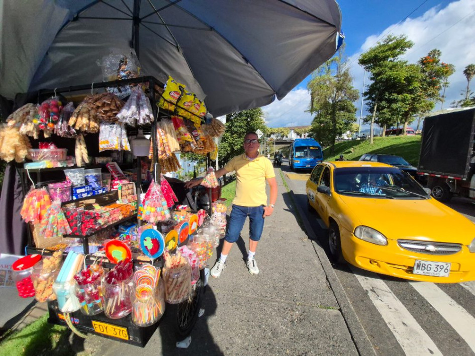 Ángel Leonel Cano Jiménez es un vendedor ambulante que, desde hace 15 años, ofrece dulces artesanales en una bicicleta ubicada cerca al centro comercial Fundadores.