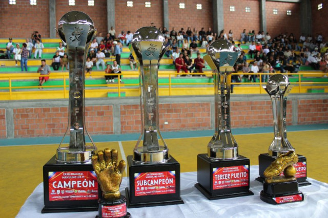 Los trofeos que entregó la Liga Caldense de Fútbol de Salón.