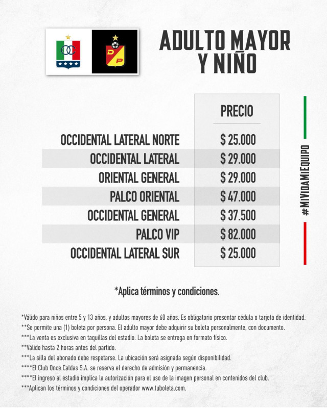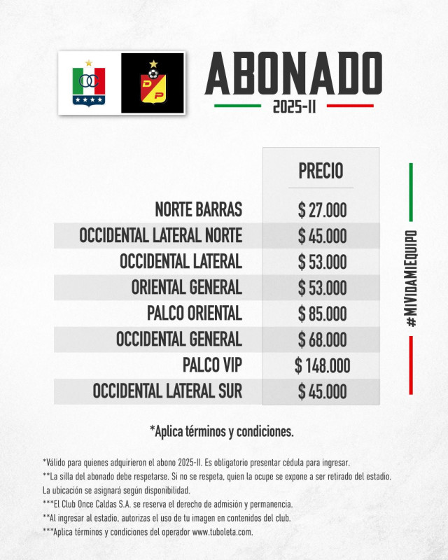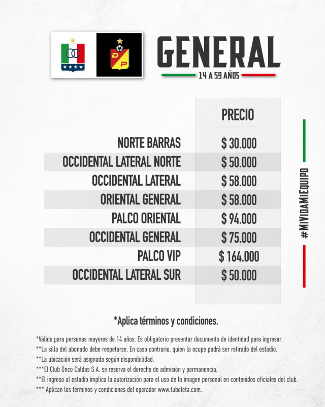 Por eso, Once Caldas ya dio a conocer los precios de la boletería. "Nuestra casa, nuestro clásico" es el mensaje con el que el Club promociona el partido y se espera un lleno en el Palogrande, más sin la fanaticada visitante.