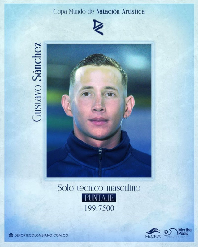 El colombiano Gustavo Sánchez quedó cuarto en el solo técnico masculino del mundial de natación artístico