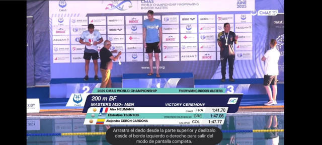 Alejandro Cerón ganó dos medallas de bronce en el Mundial Máster de Natación con Aletas en las pruebas de 200 y 400 metros.