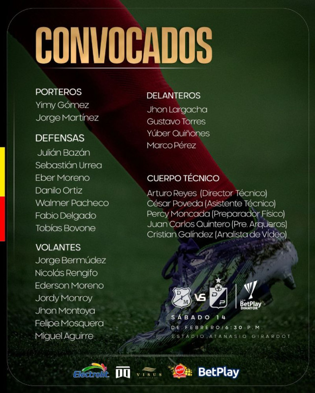 Ante este panorama, el técnico samario convocó un grupo alternativo para visitar al DIM, con nombres como Yimy Gómez y Jorge Martínez en el arco; Julián Bazán, Sebastián Urrea y Walmer Pacheco en defensa; y hombres en ataque como Jhon Largacha, Gustavo Torres y Yúber Quiñones.