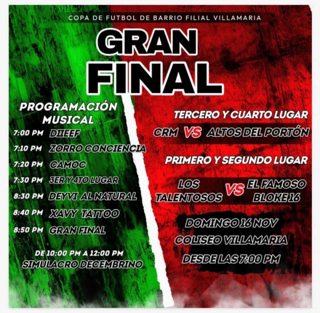 Este domingo (16 de noviembre) es de fiesta futbolera en Villamaría. Se disputa la final de la edición 16 de la Copa De Fútbol De Barrio Filial Villamaría y todo está listo para que el Famoso Bloke 16 o Los Talentosos levanten el título.