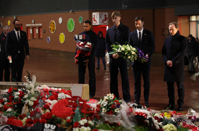 Tras la conclusión de la rueda de prensa, en la que tanto el central blanco Huijsen como el entrenador Xabi Alonso dieron sus puntos de vista respecto al choque contra el Liverpool, la representación blanca hizo la ofrenda floral y presentaron sus respetos al póstumo jugador portugués y a la afición 'Red' que se encontraba en aquel momento en el altar que construyeron para Jota, gesto que respondieron con una ovación.