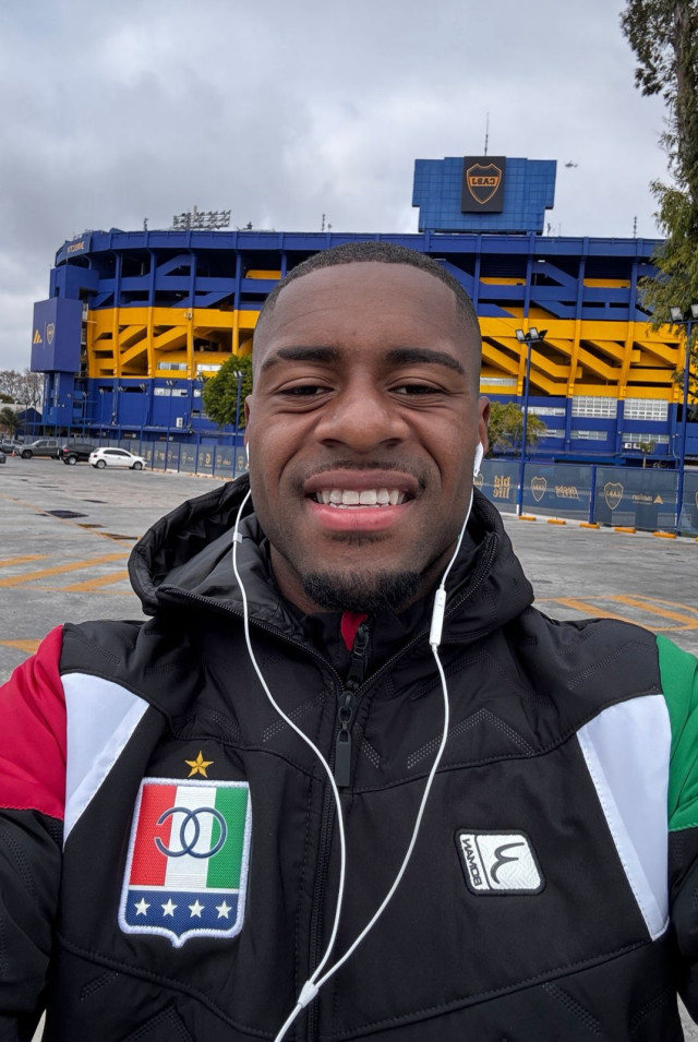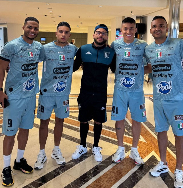 El equipo está hospedado en el Hotel Sheraton y algunos jugadores se tomaron una foto en el lobby con Duván Vergara, exfutbolista del América de Cali que ahora juega en Racing.