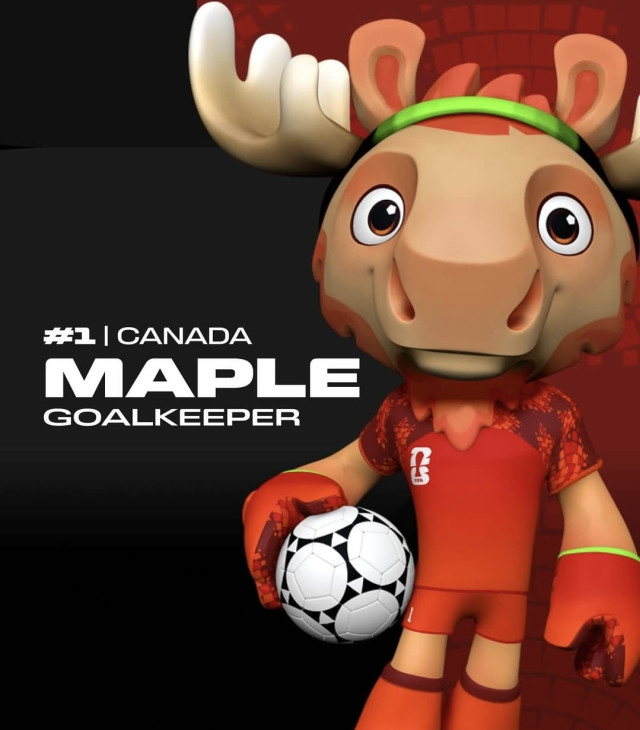 Maple, vestido con los colores rojos de Canadá, usa los guantes característicos de los porteros, y destaca "por su creatividad, resiliencia y un auténtico individualismo", según la FIFA.