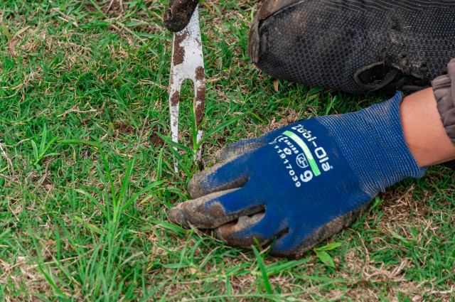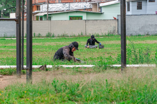Las obras, que se iniciaron este año, se centran en la renovación total de la cancha, abordando problemas graves de mantenimiento, como la falta de drenaje que causaba inundaciones. Se ha nivelado el terreno y sembrado nueva grama, que muestra un crecimiento positivo.