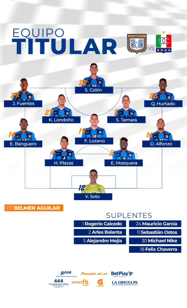 Éder Chaux, para los de Manizales, también fue figura y atajó los disparos del Chicó, que en el segundo tiempo creció y volteó el partido a su favor. A los 76 minutos Frank Sebastián Lozano empató tras anticiparse en un tiro de esquina y a los 89 Michael Nike Gómez le dio vuelta al marcador con una definición al segundo palo.