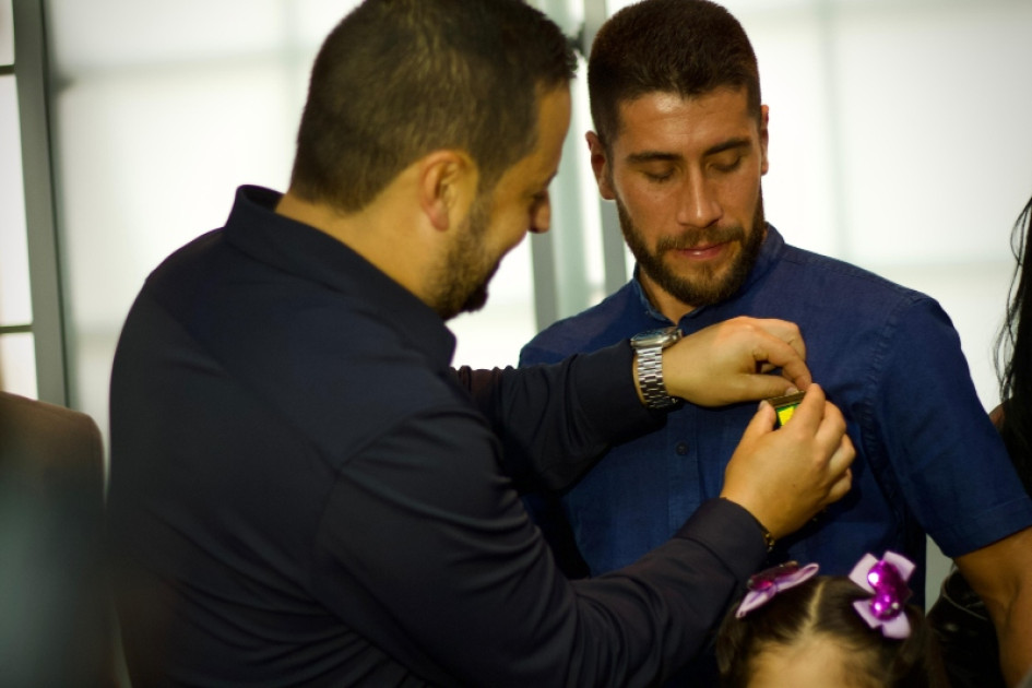 Manizales. Andrés Duque, secretario del Deporte de Caldas, condecora al paratriatleta Juan Esteban Patiño, quien irá por Colombia a los Juegos Paralímpicos de París 2024. La ceremonia fue presidida por el gobernador Henry Gutiérrez. También fue homenajeado José Wálter Gómez, el técnico del deportista. Caldas lleva a París 2024 dos deportistas y dos entrenadores.