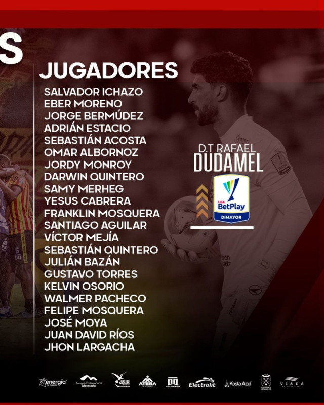 En la lista aparecen Salvador Ichazo, Darwin Quintero, Juan David Rios, Samy Merheg, José Moya, Yesus Cabrera, Kelvin Osorio y demás referentes del plantel profesional.