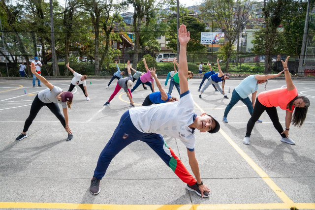 La comunidad del barrio La Asunción disfruta todos los días de aeróbicos en la cancha.