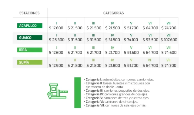 En casetas como Guaico, la más cara de todas, los precios nuevos van desde los $25 mil 300 en la categoría 1 hasta los $107 mil 600 en la 7.