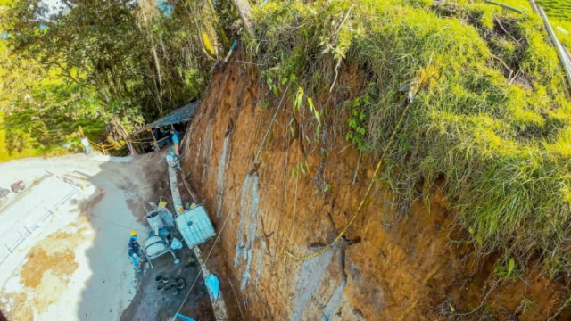 Esta intervención consiste en la instalación de anclajes pasivos que se interconectan mediante vigas reticulares de concreto reforzado, conformando un sistema estructural que asegura la contención del terreno.