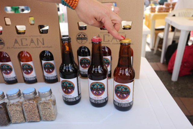 Hasta cerveza de sabores naturales se ofrece en la feria.