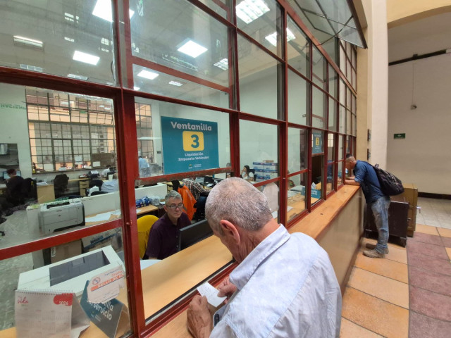 Hasta este lunes (7 de julio) se podía pagar el impuesto vehicular sin sanciones por demora en el edificio La Licorera, en Manizales. En la foto, la ventanilla de la Secretaría de Hacienda de Caldas.