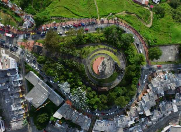 Vista aéreo del Monumento a los Colonizadores en Manizales.