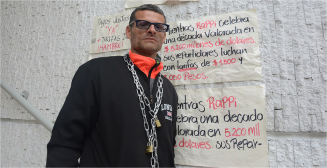 Tiene 43 años y, tras un lustro trabajando con Rappi, inició una huelga de hambre el pasado 26 de enero. Ese día se encadenó a las afueras de las oficinas del Ministerio de Trabajo en la capital de Caldas.