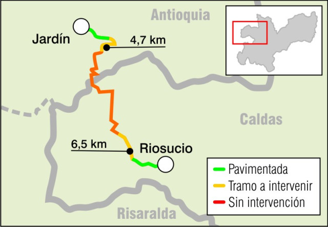 Pese a ello, resaltó el interés de que se adicionen más recursos, tal y como lo prometió las Gobernación de Caldas, ya que solo el trayecto entre Riosucio - Jardín comprende unos 52 kilómetros, de los cuales 32 son de Caldas, "por eso el alcance del contrato que se va a reanudar no solo es corto sino que no ha sido consistente", lamentó.