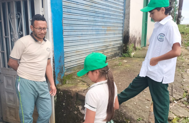 Puerta a puerta los estudiantes informan a las familias acerca de los riesgos que vive la comunidad ante la presencia de la especie invasora.