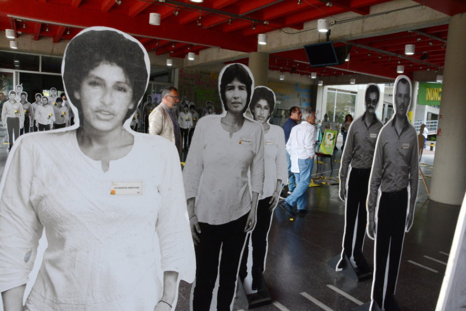 Una galería de la memoria conformada por 100 siluetas y 200 fotografías que evocaban a líderes sociales, concejales, diputados, congresistas y dos precandidatos presidenciales (Bernardo Jaramillo Ossa y Jaime Pardo Leal) del Partido Unión Patriótica (UP) se instalaron ayer en el hall de la Universidad de Caldas como parte de los Diálogos universitarios para la no repetición.