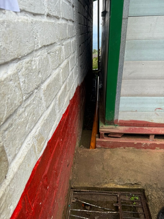 El agua inundó un pasillo y siguió derecho hasta entrar al salón, donde estaban los alumnos. La rejilla obstruida se encuentra entre dos aulas.