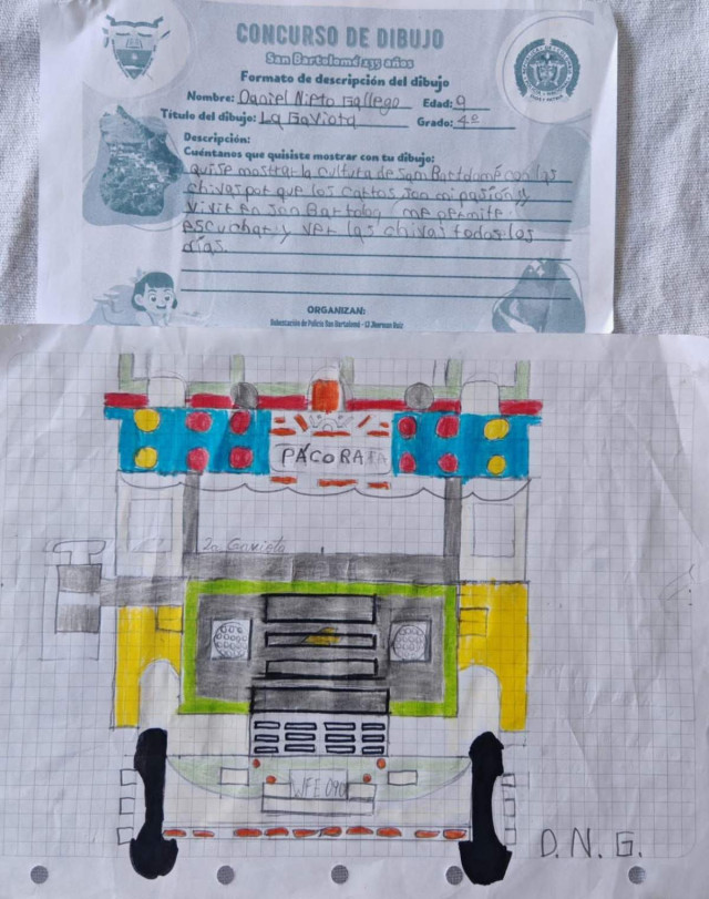Valery Restrepo Alvarez y Daniel Nieto Gallego, estudiantes de la Institución Educativa Mariscal Robledo del corregimiento San Bartolomé, en Pácora (Caldas), fueron los ganadores del concurso de dibujo llevado a cabo dentro de la celebración del cumpleaños del corregimiento.