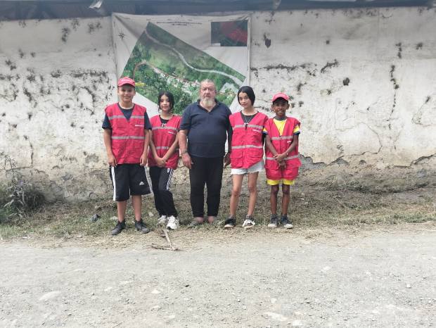 En Río Claro, vereda de Villamaría afectada por la avalancha del volcán del Ruiz en 1985, brigadas infantiles y juveniles aprenden sobre prevención del riesgo. Ellos expondrán en la Bienal Nacional, en Mariquita (Tolima) sobre los lahares.