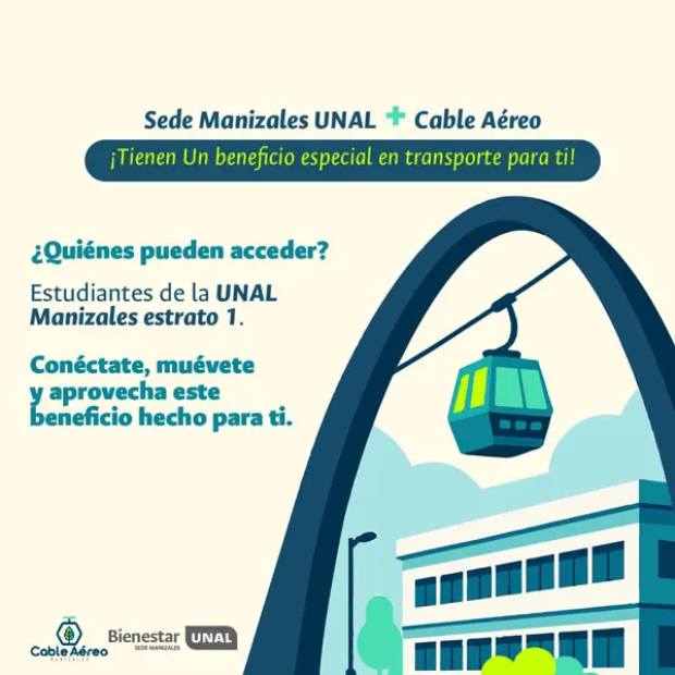 En el comunicado comenta que la sede, a través de Bienestar Universitario, anunció que las y los estudiantes de estrato 1 podrán acceder a la tarifa diferencial del Cable Aéreo, beneficio aprobado por el Concejo de Manizales con el propósito de apoyar la movilidad estudiantil en la ciudad.