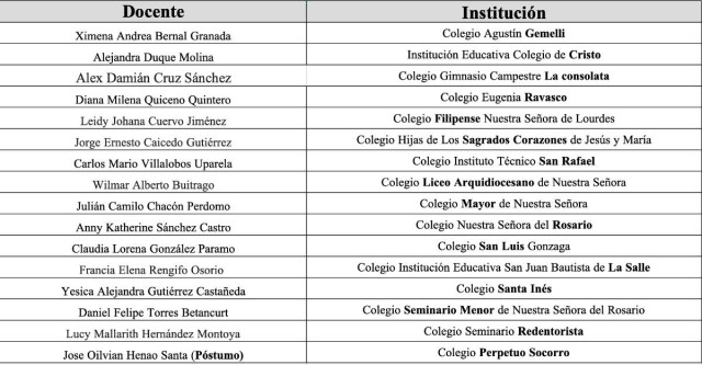16 docentes fueron exaltados por sus méritos y valores, bajo criterios que destacan la dedicación, el testimonio cristiano, el liderazgo pedagógico, la innovación, la investigación y el sentido de pertenencia institucional.