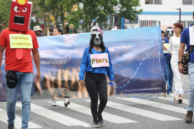 El llamado por la preservación desfiló este jueves, 5 de junio, sobre la avenida Santander. Desde el Parque de la Mujer hasta la Plaza Simón Bolívar pancartas, disfraces y performances de colegios y entidades invitaron al público a sumarse a la protección del agua, bosques, animales y demás.