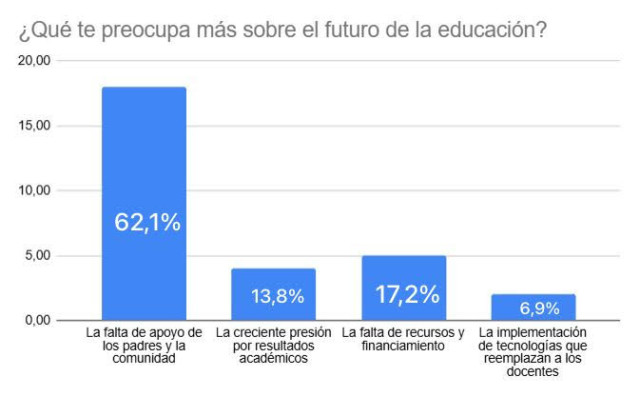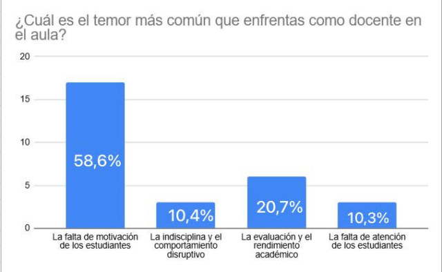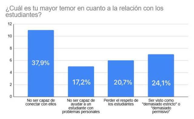 Las respuestas muestran que muchos maestros sienten ansiedad ante los retos que plantean las nuevas generaciones. Señalan inquietudes frente al manejo de conflictos, la adaptación a transformaciones sociales y el acompañamiento familiar en los procesos formativos.
