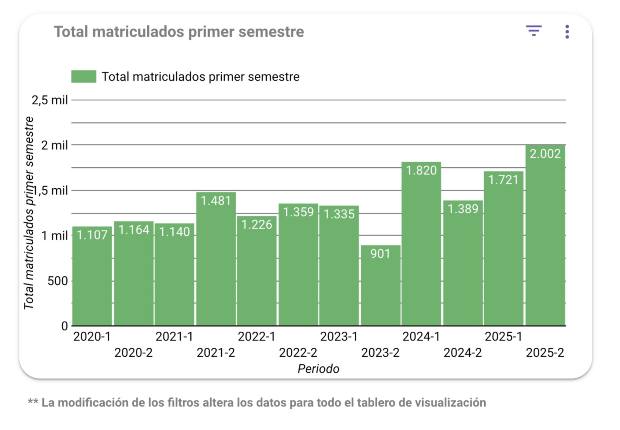 Para este semestre, hemos matriculado más de 2.000 estudiantes nuevos, lo cual es una cifra histórica. En 53 años, nunca se había presentado que 2.000 estudiantes nuevos ingresaran en un periodo académico.