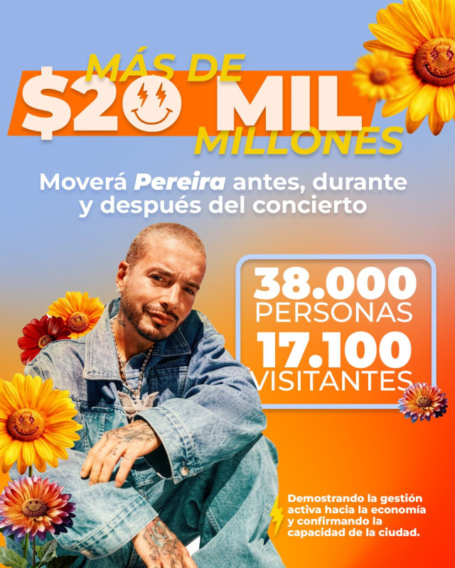 Pereira se alista para recibir uno de los eventos musicales más importantes del año, con el concierto de J Balvin programado para este sábado 28 de marzo a las 8:00 p.m. en el Estadio Hernán Ramírez Villegas, que proyecta un impacto económico superior a los $20.000 millones.