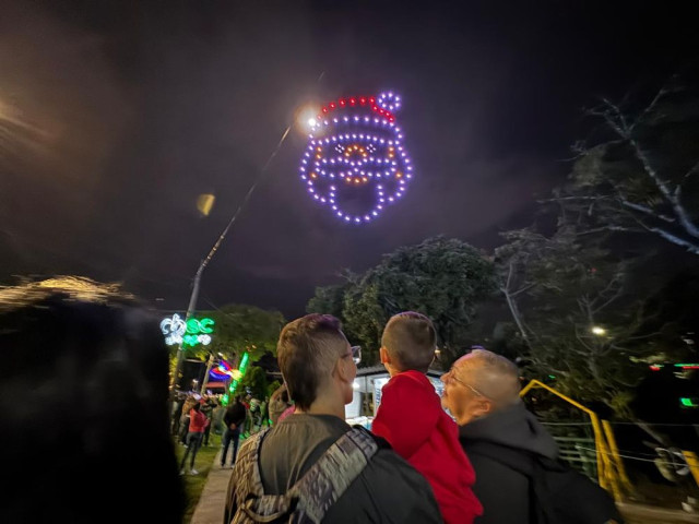 Tras el show, cientos de familias recorrieron el alumbrado navideño, que este año cuenta con cerca de 1.200 figuras luminosas y un corredor de dos kilómetros de iluminación que conecta el Lago La Pradera con las principales avenidas del municipio.