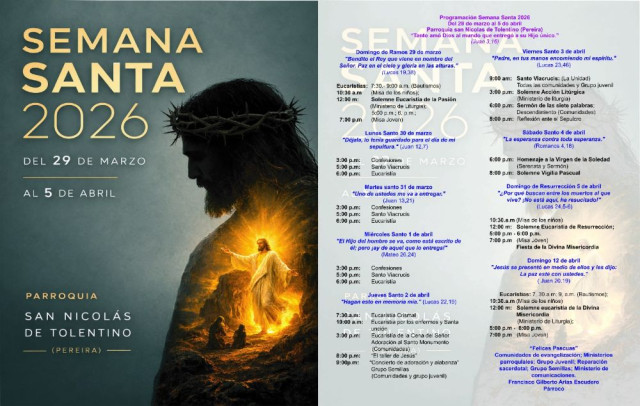 Por su parte, la parroquia San Nicolás de Tolentino desarrollará su programación entre el 29 de marzo y el 5 de abril, con una agenda enfocada en la participación comunitaria y espacios de oración.