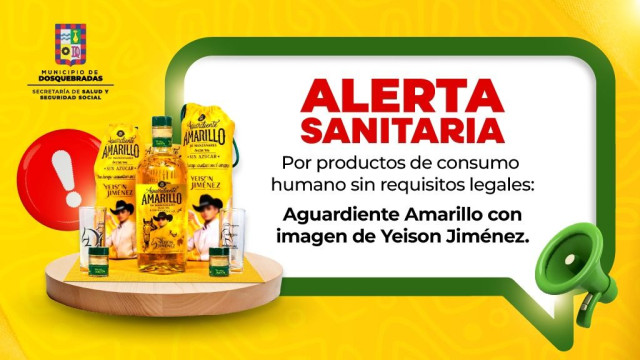 Según lo informado por la secretaría, el Aguardiente sin azúcar Amarillo de Manzanares que están comercializando con la imagen del cantante, estaría utilizando de manera indebida un registro sanitario vigente y presentaría inconsistencias en su etiquetado.