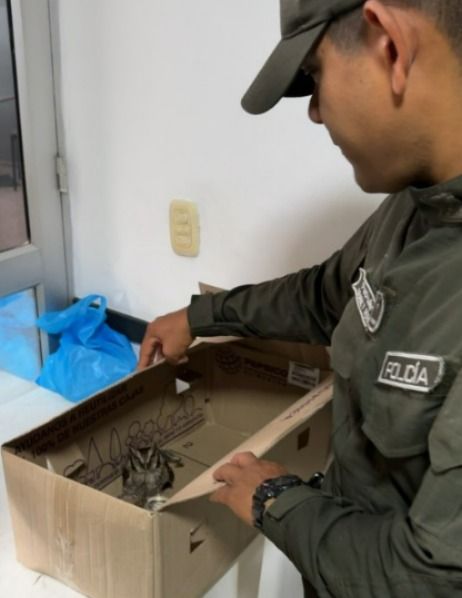 En la Terminal de Transportes de Pereira, miembros de la Policía también recuperaron a dos aves que eran transportadas en cajas de cartón.