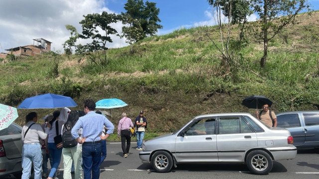 Unos 500 docentes del Eje Cafetero bloquean la vía La Romelia - El Pollo en protesta por los problemas de su sistema de salud. El plantón se extendería tres días.