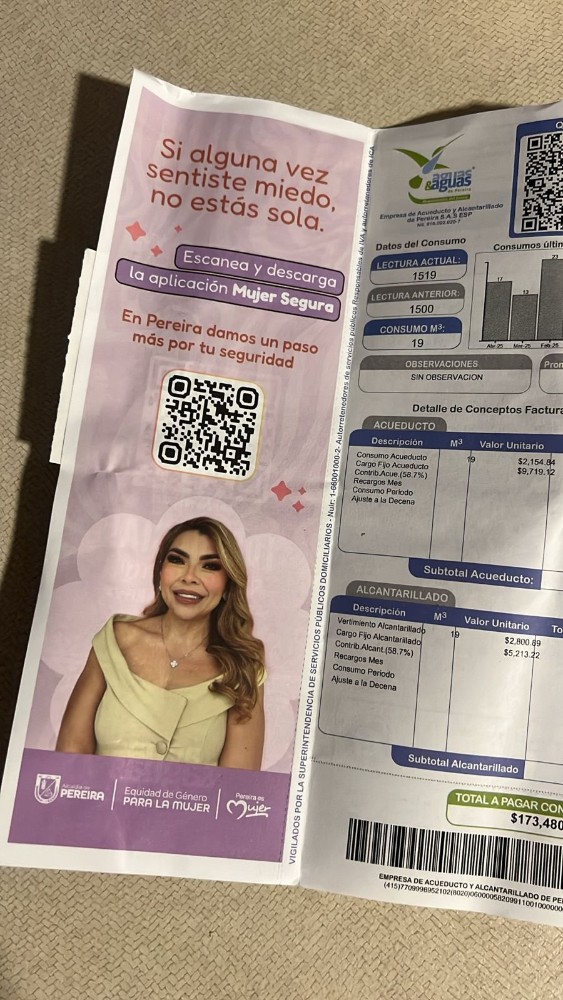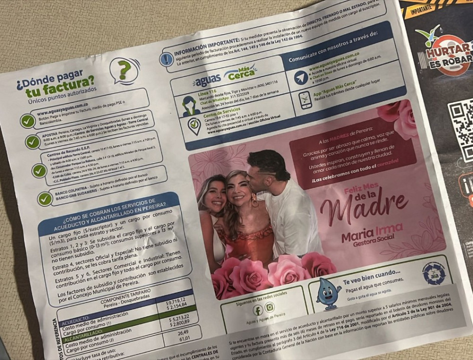 “¿A ustedes en otras ciudades también les llega el recibo del agua con la foto de la candidata/esposa del alcalde haciendo campaña con recursos públicos? ¿O pasa solo en Pereira?”