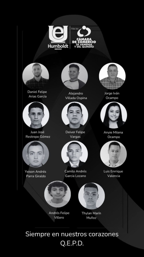 11 miembros de la universidad Alexander Von Humboldt de Armenia murieron tras un trágico accidente de tránsito en la vía La Línea, este sábado.