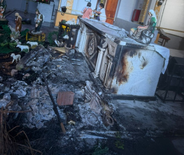 Fotos | Cortesía | LA PATRIA Así quedó por dentro la parroquia Nuestra Señora de la Valvanera, en Pereira, luego del incendio que se presentó en la zona donde está ubicado el pesebre.