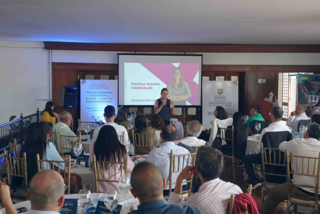 Juliana Barreto, en Manizales, invitada por la Gobernación de Caldas, da su charla empresarial Emprendimiento con propósito.