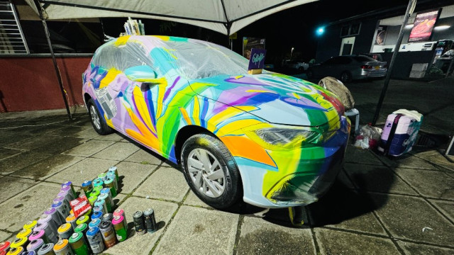 La obra, una iniciativa de LA PATRIA que contó con el apoyo de Los Coches, quien dio el carro para este trabajo, realizado por la artista manizaleña Alejandra Arias, conocida en el mundo artístico como ‘La Goldin’ (@goldin.art).