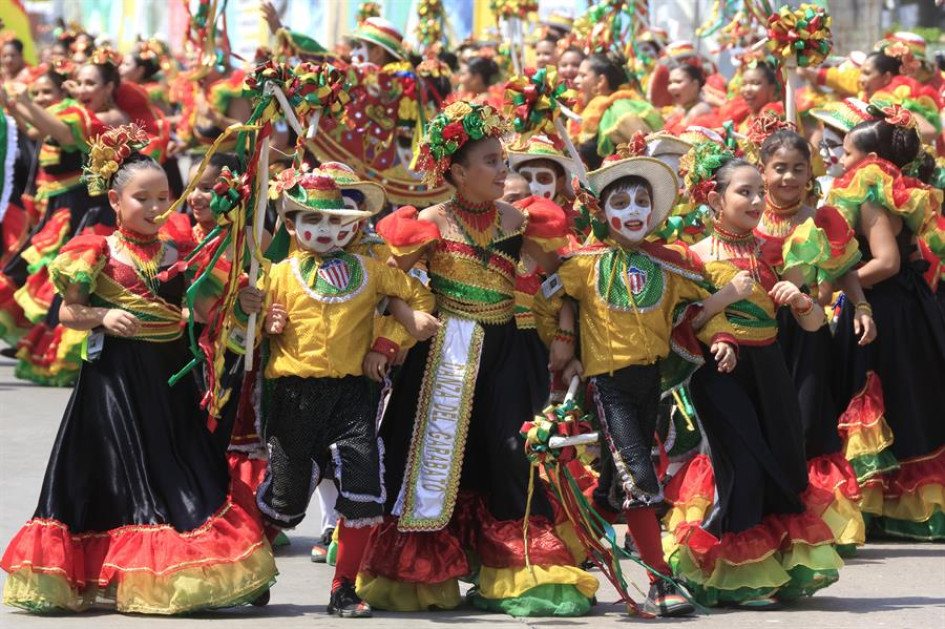 Con una marcada influencia negra y española, los hombres y mujeres de estos grupos de danza se caracterizan por su colorido vestuario.
