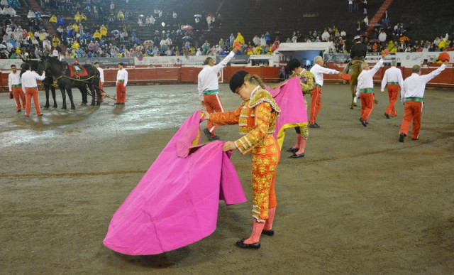 En medio de una pertinaz lluvia antes del festejo, los manizaleños se fueron acercando a la plaza para disfrutar de la novillada sin picadores.