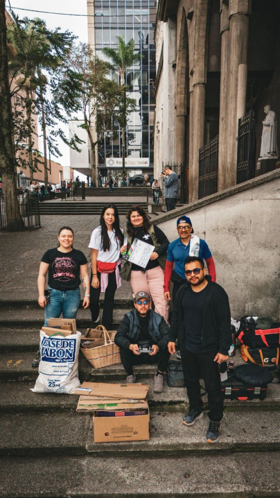 Algunos de los integrantes del equipo de trabajo del cortometraje Los días que guardé para ti. Entre ellos, está Laura Patricia Cardona, sonidista; Alejandra Buriticá, vestuario y maquillaje; Yeferson Ortega, director, editor y musicalizador, y Daniela Vargas, asistente de dirección y productora del cortometraje.