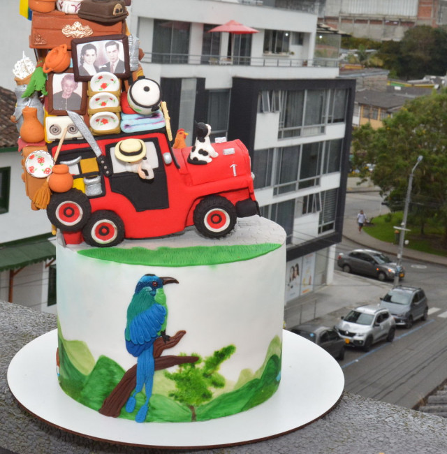 En el segundo nivel de la torta, Carolina incluyó entre los objetos que carga el yip fotografías de sus abuelos mientras que en el primer nivel destacó el barranquillo y el paisaje de la región.