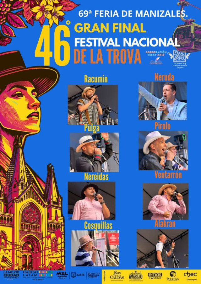 Desde las 6:00 p. m., en el parque Ernesto Gutiérrez será la final del Festival de la trova entre 8 participantes: cuatro de Antioquia y cuatro de Caldas.
