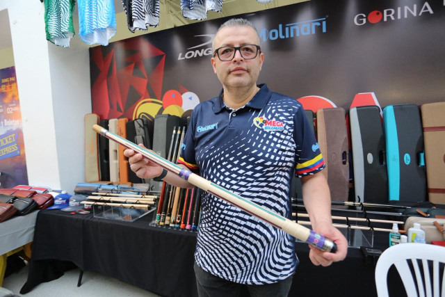 Desde Bogotá llegó Megabillar, especializado en productos europeos y asiáticos como estuches, tacos, flechas y otros elementos, según explica su representante, Luis Gabriel Roa.