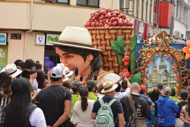 Los asistentes se sorprendieron con las enormes carrozas que exaltaban el café que se produce en la región y no dudaron en hacer un registro con sus celulares. Esta tiene una medida de 4 metros de altura, 10 metros de largo y 3 metros de ancho.